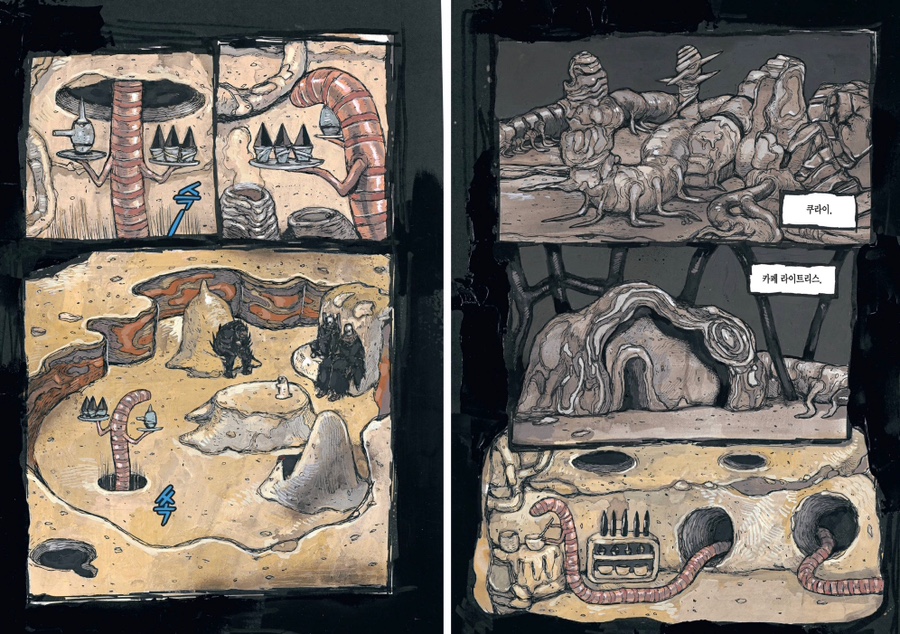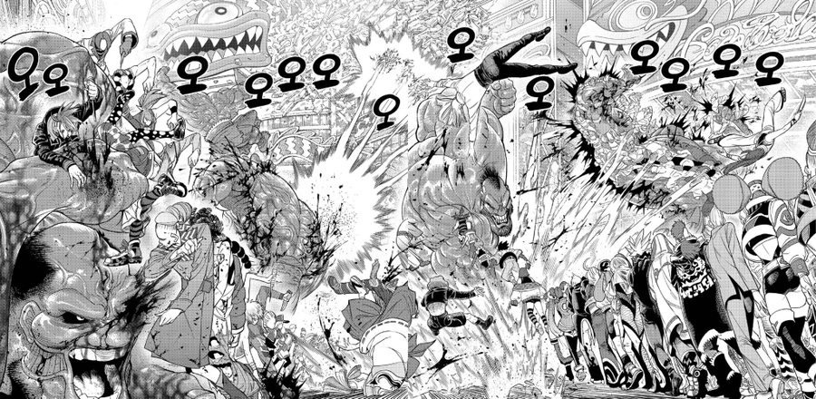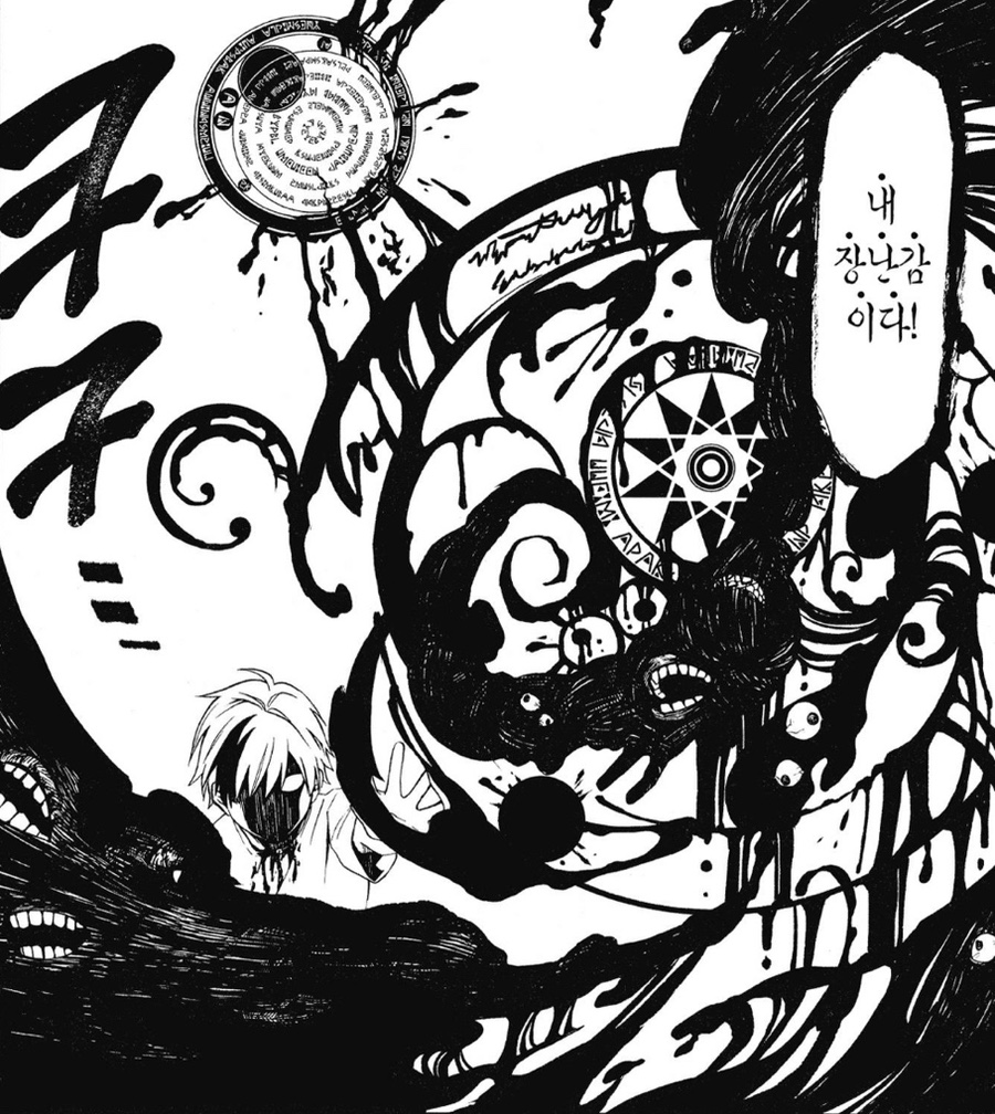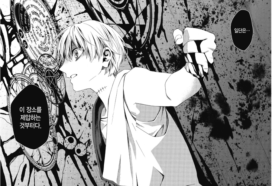 좋아하는 씬들이 전부 고어하거나 잔인해서ㅜㅋㅋ 적정 장면을 찾느라 힘들었다... 그래도 신과 노이의 합작품이었던 인간 샌드위치랑 노이 첫 등장이었던 화장실 벽쿵 장면은 꼭 넣고 싶었는데ㅜㅋㅋ 큐 작가의 만화에서는 잔인하지 않은 페이지를 찾기가 더 어렵다.