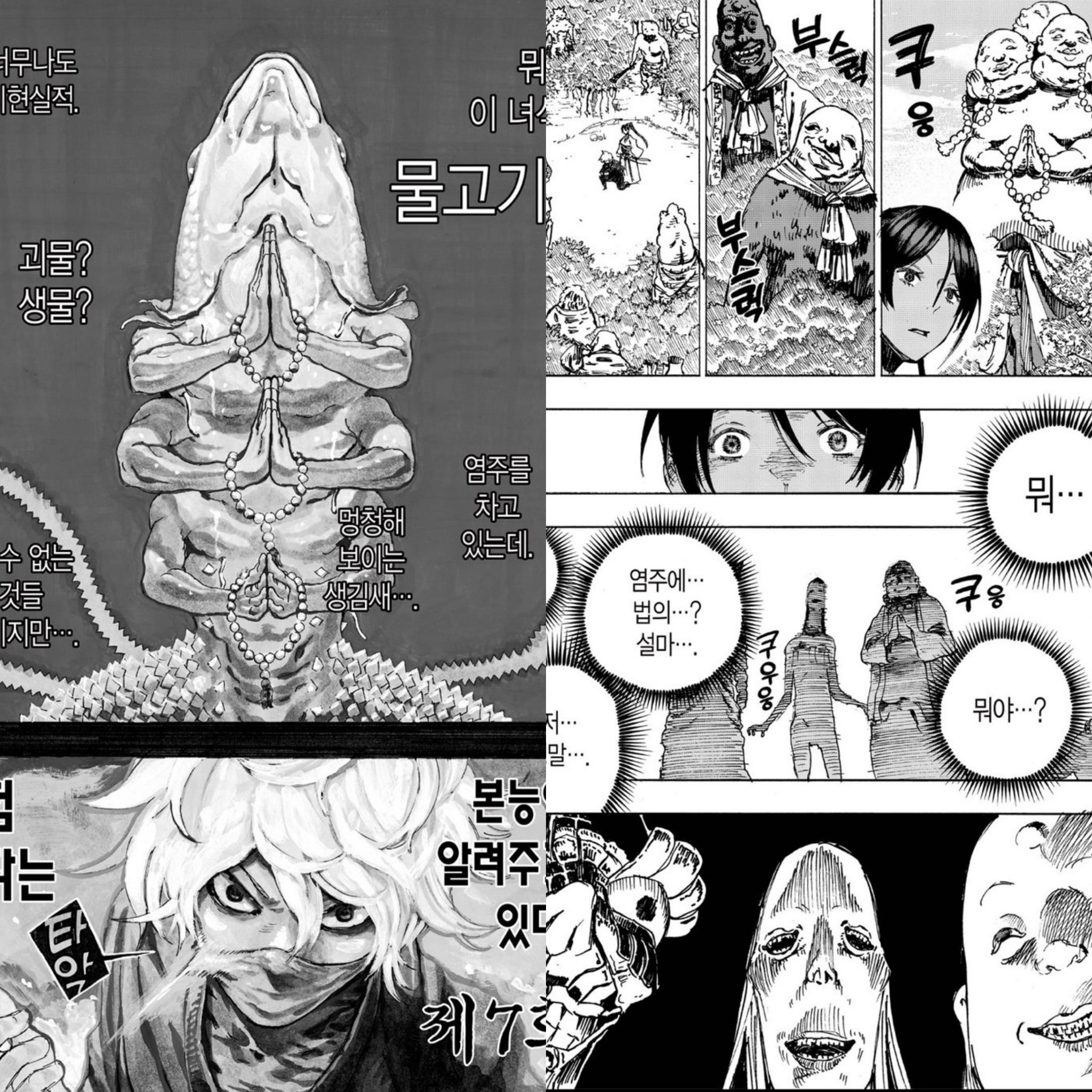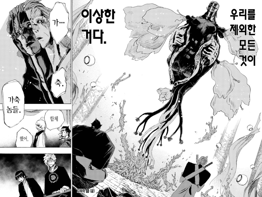 몹싸, 원펀맨으로 유명한 ONE 작가의 최신작으로 세계관과 설정이 너무 재밌고 온갖 기기괴괴한 종류의 인외생명체들이 많이 나와서 내 심장을 뛰게 한다. 설정이 너무 참신해서 보다보면 원작가는 천재가 맞다…라는 생각이 듦. 아직 연재 초라 몇권 정발되지도 않았음.