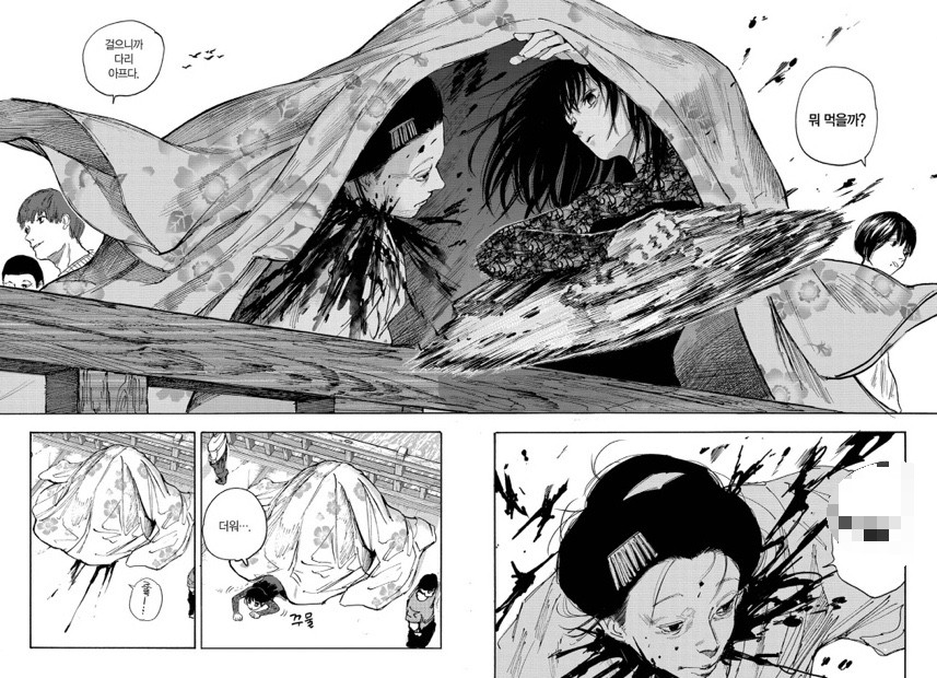 아주 아주 특이하게도 일본인 작가가 그린 일제강점기 시대의 조선을 배경으로 하고 있다. 일본인 소설가와 조선의 소녀 무당을 취재하며 벌어지는 이야기. 작가가 조선이 피해국이었음을 인식하고 있는 데다가, 조선의 무속에 대한 자료조사까지 엄청나게 치밀하게 한 것이 느껴져서 (아직까지는) 흥미롭게 보고 있다. 무엇보다도 주인공 무녀를 도와주는 신? 귀신? 도깨비? (아직 정체를 모르겠음) 가 두족류의 파워를 쓴다는 점이 몹시 맘에 듦ㅋㅋㅋ (지독한 두족류 러버) 아직 정발도 2권까지밖에 안 된 상태라 그림을 많이 첨부하지는 않겠다.