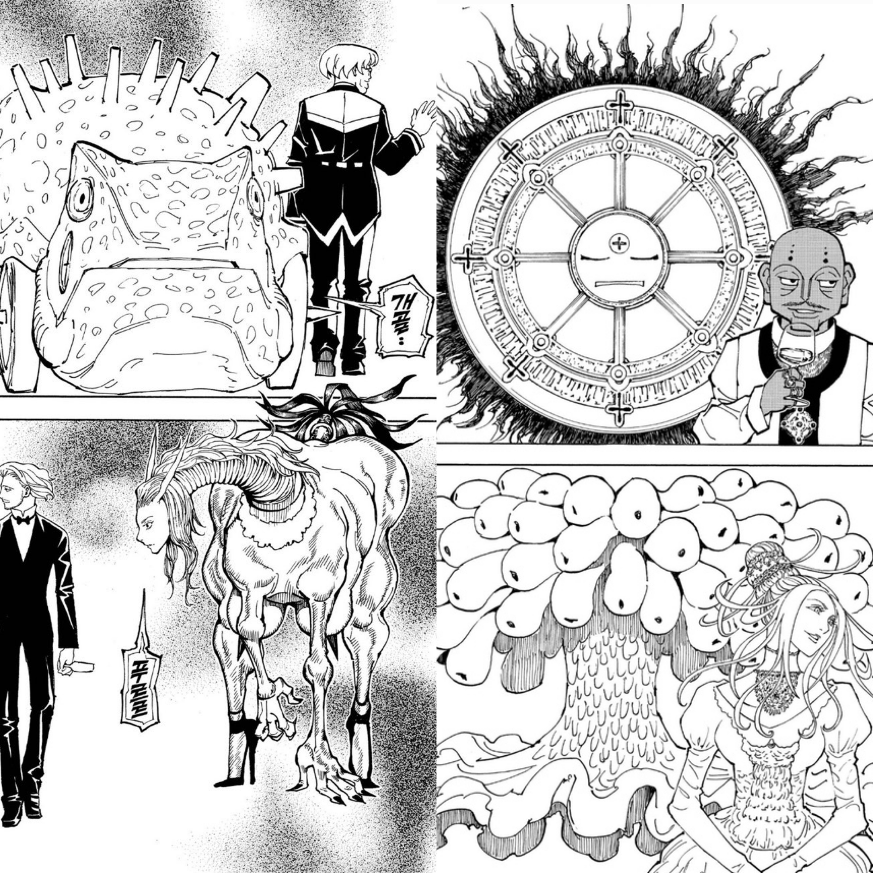 사실 헌헌은 에피소드 별로 재미의 격차가 심하다. 나같은 경우 초반부는 굉장히 재밌게 봤고, 특히나 미친 상남자 크라가 클로로 주먹으로 줘패는 옥션 편은 밤을 새가며 하루만에 읽었지만, 그리드 아일랜드 편은 너~~~무 재미 없어서 다 보는데 2년(구라 아님)이 걸렸다ㅋㅋㅋ 그 후에 레전드 급의 작화 날림에도 불구하고 서사와 연출로 많은 사람들이 명작 오브 명작으로 꼽는 개미 편은 재미는 있었으나 크라피카가 나오지 않아서 내게는 다소 심심했고, 오히려 선거 편이 좀 더 흥미로웠던 거 같다. 그리고 가장 최근 암대 편은...^^ 말해 뭐해 크라피카가 올블랙 수트 쫙 빼입으시고 미친 남자의 악마로 돌아오셨기에 너무 재밌게 보는 중이다. 그런데 이건 에바지; 싶을 정도로 글이 많은 데다가 (이게 만화야 소설이야) 연재텀이 극악해서 신권을 볼 때마다 가뜩이나 어려운 앞 부분 내용을 다 까먹은 채로 보게되다 보니까 그냥 이해를 포기하고 느끼는 경지에 다다른듯ㅋㅋㅋㅋㄱㄲ