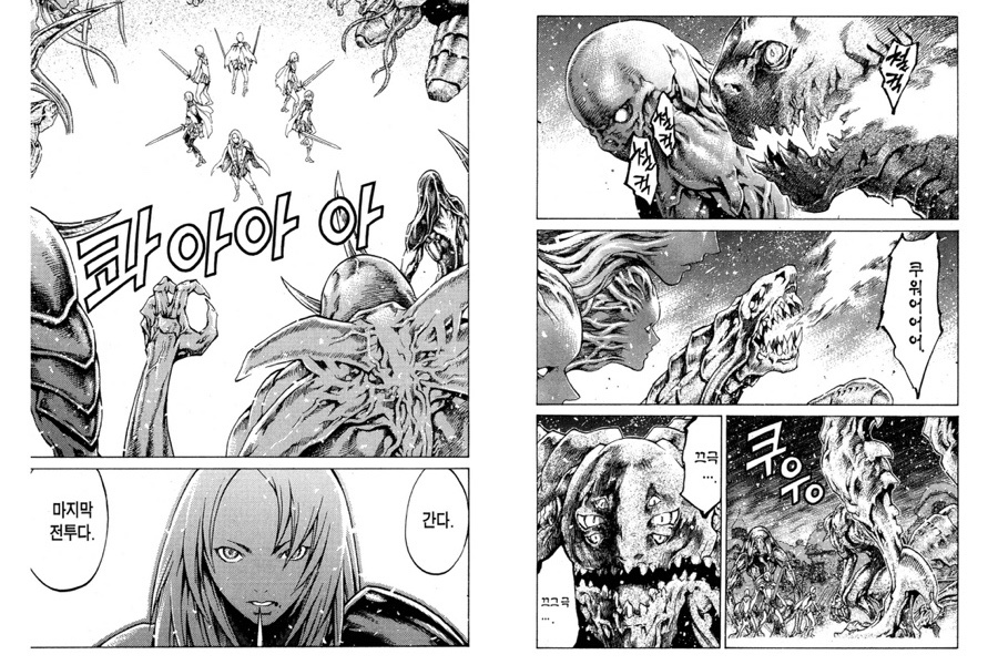 을 하려 한다. 인외, 크툴루, 괴물, 요괴들과 함께 혈이 낭자한 아름다운 전투를 하는 만화들이다. 대부분 청불 액션 판타지 장르에 해당한다. 홍대병 심해서 내 기준 지나친 메이저작 (주귀톱, 진격거 등) 들은 제외했지만 헌헌이나 베르세르크처럼 너무 띵작인 만화들은 차마 빼지 못했다.