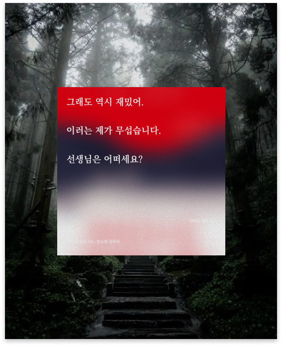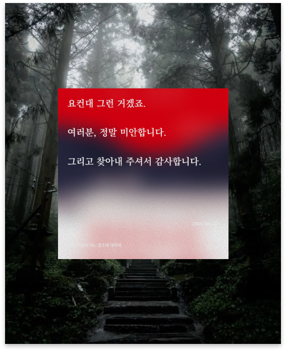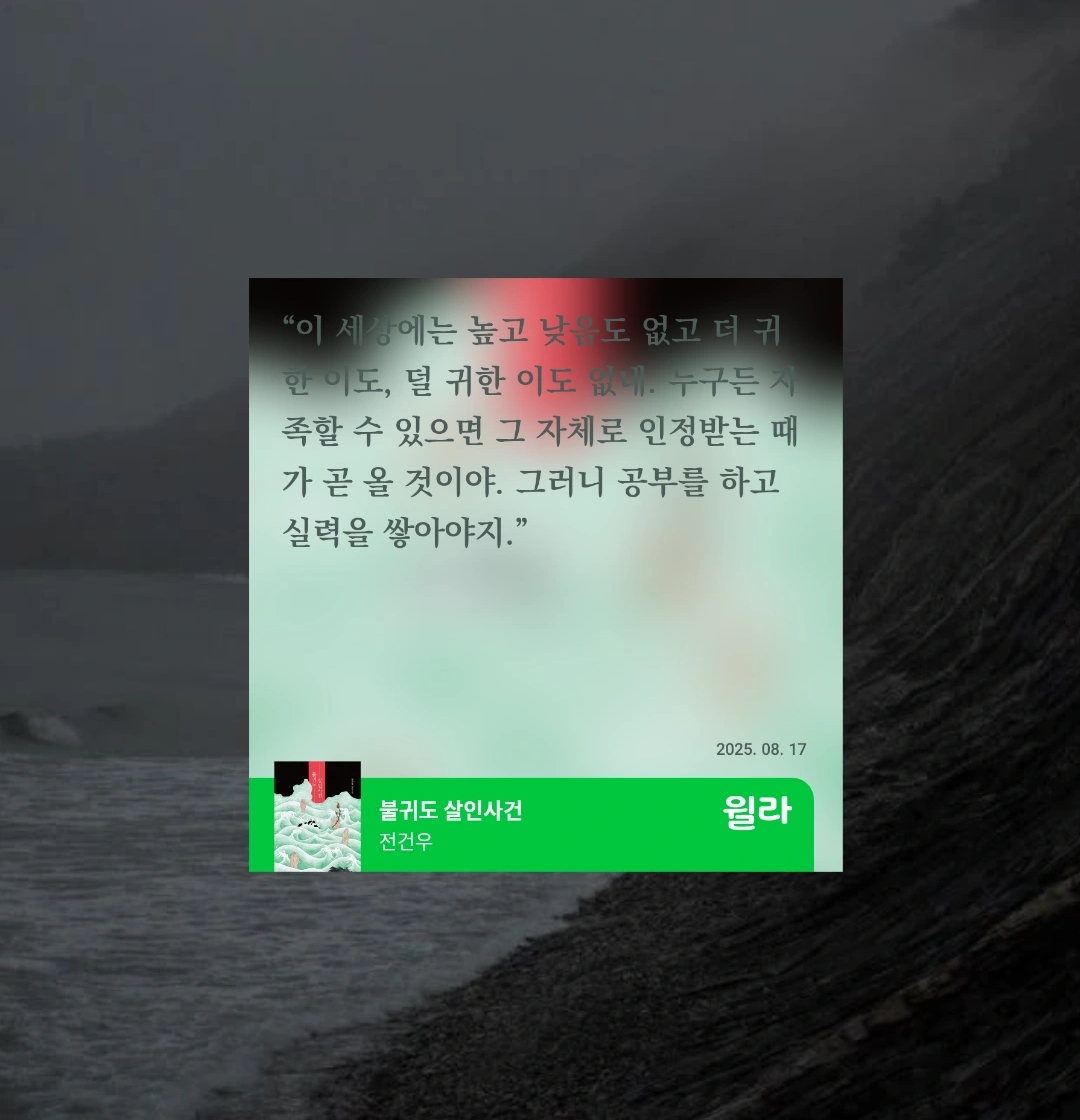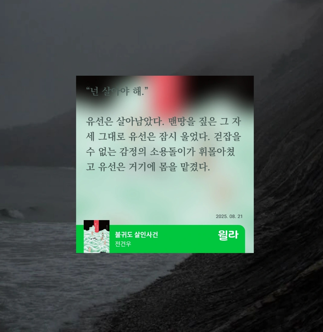 크게 와닿는 메시지나 감명 깊은 구절은 없었지만, 왜인지 유선이 동굴에서 탈출하는 장면만은 기억에 남는다. 나의 절망이자 트라우마가, 사랑이자 의지로 탈바꿈되는 순간.